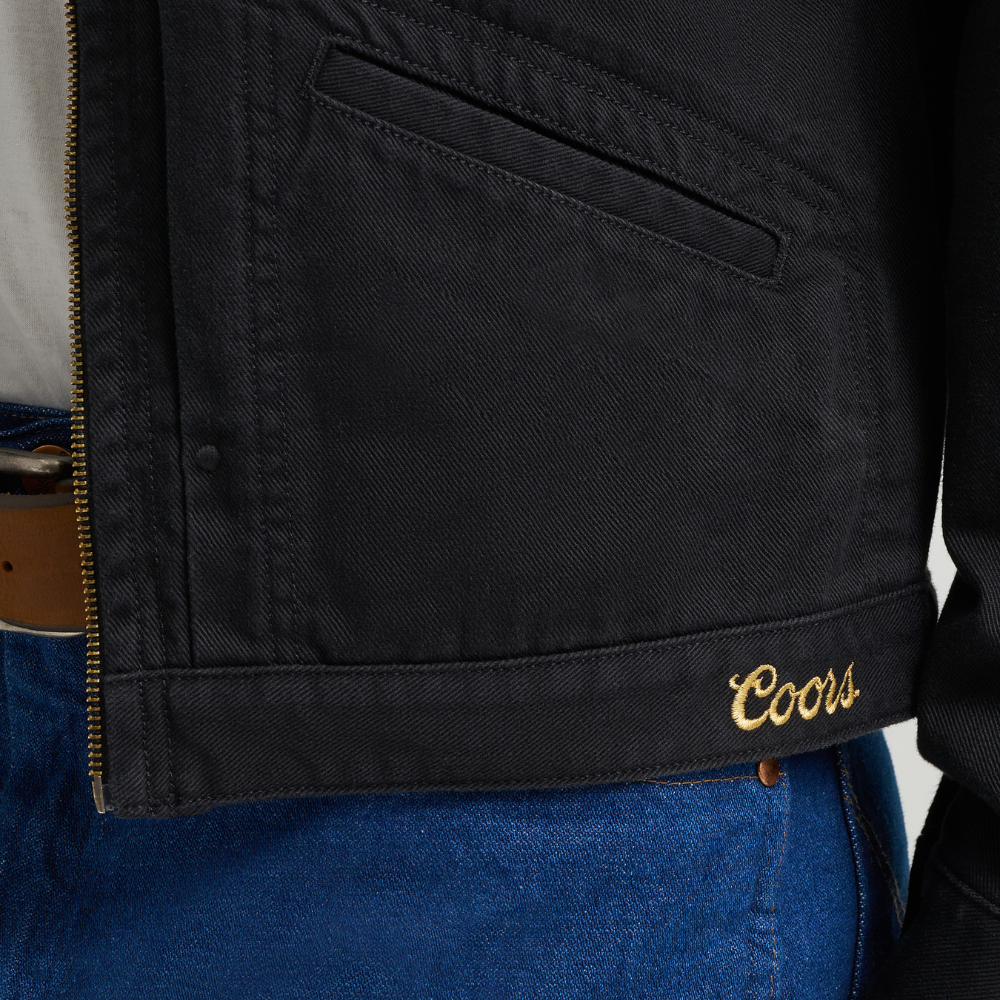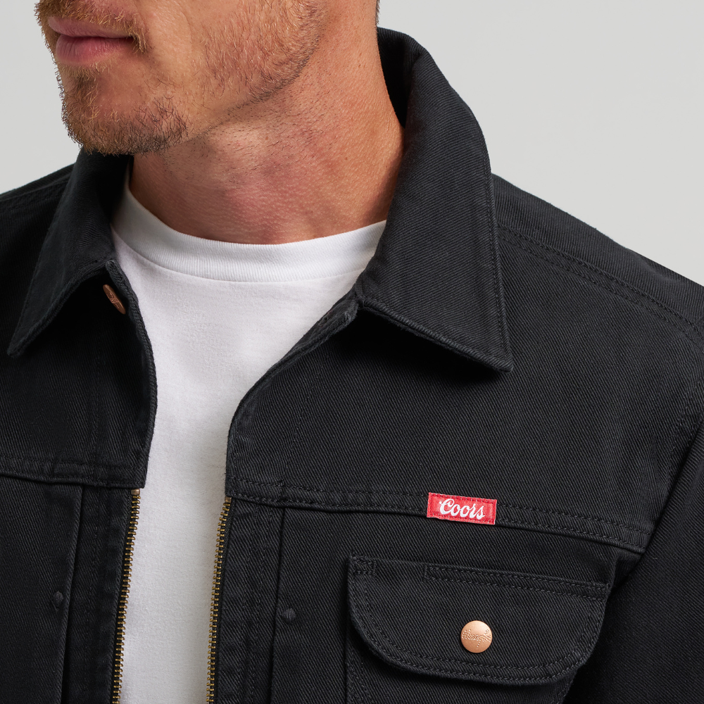 Two legends. One West. This Wrangler® x Coors® Pinnacle Jacket honours the trail we’ve shared for decades—from rodeo circuits to the backroads. This modern take on the classic trucker jacket features a regular cut that fits just right. It comes with a single chest patch pocket with the iconic ‘W’ stitching, two angled lower pockets, and a zippered front for easy layering. Plus, you’ll find a Coors patch on the right sleeve, a Coors label above the chest pocket, and some co-branded embroidery across the back to add some flavour to any outfit.