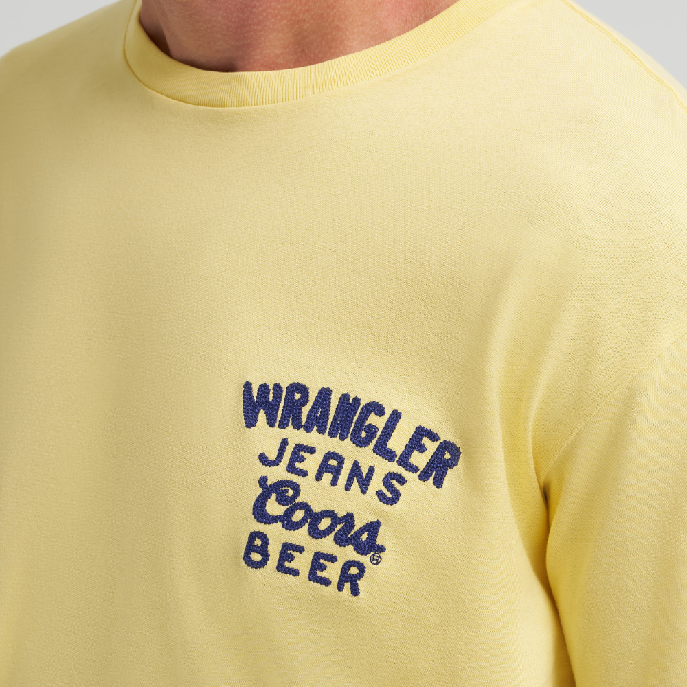 You can never have too many classic crewneck shirts. Our Wrangler® x Coors® Logo T-Shirt keeps things clean, crisp, and laidback with a relaxed fit offering plenty of room. It’s crafted from 100% cotton to keep you comfortable on every adventure. This short-sleeve shirt’s finished with co-branded logos at the chest to deliver Western authenticity in a league of its own.