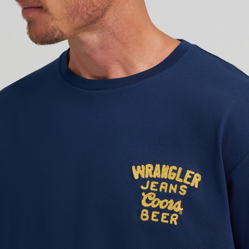 You can never have too many classic crewneck shirts. Our Wrangler® x Coors® Logo T-Shirt keeps things clean, crisp, and laidback with a relaxed fit offering plenty of room. It’s crafted from 100% cotton to keep you comfortable on every adventure. This short-sleeve shirt’s finished with co-branded logos at the chest to deliver Western authenticity in a league of its own.